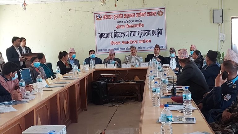खोटाङ – खोटाङका स्थानीय तहमा भएका अनियमितता तथा भ्रष्टाचारविरुद्ध अख्तियार दुरुपयोग अनुसन्धान आयोगमा २४ वटा उजुरी परेको छ । अख्तियार कार्यालय बर्दिबास, महोत्तरीले आइतबार खोटाङको दिक्तेलमा आयोजना गरेको भ्रष्टाचार नियन्त्रण तथा सुशासन प्रवर्द्धन विषयक अन्तरक्रिया कार्यक्रममा आर्थिक वर्ष २०७७/७८ देखि २०७८/७९ माघ मसान्तसम्ममा पाँचवटा मात्र उजुरी फर्स्योट भएको जानकारी दिइएको छ ।