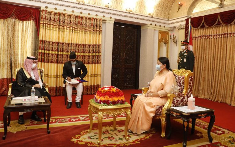 राष्ट्रपति कार्यालय, महाराजगञ्जमा भएको भेटमा नेपाल र साउदी अरबबीचको सम्बन्धका विविध पक्षका साथै पारस्परिक हित एवं चासोका विषयमा विचारविमर्श भएको थियो । त्यस अवसरमा राष्ट्रपति कार्यालय र परराष्ट्र मन्त्रालयका उच्च अधिकारीहरूको उपस्थिति थियो ।