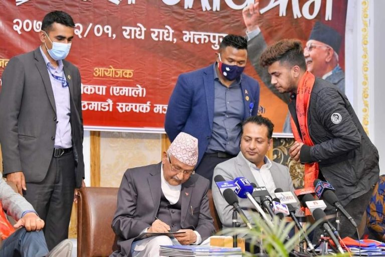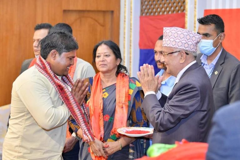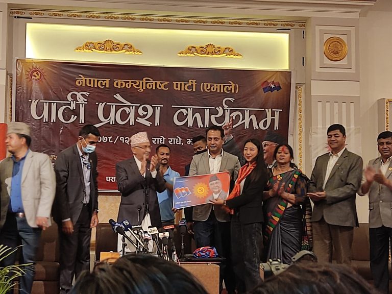 एमाले पर्सा–काठमाडौँ सम्पर्क मञ्च र युवा सङ्घ नेपाल, भक्तपुर शाखाले आज भक्तपुरमा आयोजना गरेको कार्यक्रममा पूर्वप्रधानमन्त्री ओलीले पर्साको पोखरिया नगरपालिकाका–६ का वडाध्यक्ष सियानन्दप्रसाद चौहान र जनता समाजवादी पार्टीनिकट समाजवादी विद्यार्थी युनियनका मुख्यसचिव राकेश महतोलगायतलाई प्रवेश गराउनुभएको हो ।