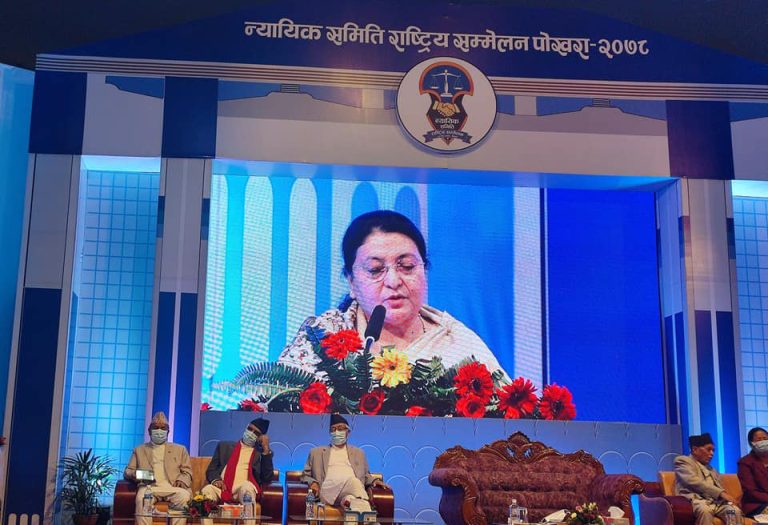 पोखरा – राष्ट्रपति विद्यादेवी भण्डारीले न्यायिक समितिको प्रथम राष्ट्रिय सम्मेलनको उद्घाटन गर्नुभएको छ । पोखराको सभागृहमा आयोजित सम्मेलनको उहाँले डिजिटल प्रविधिबाट उद्घाटन गर्नुभएको हो । उद्घाटन समारोहमा गण्डकी प्रदेश प्रमुख पृथ्वीमान गुरुङ, मुख्यमन्त्री कृष्णचन्द्र नेपाली पोखरेल, प्रदेश सरकारका मन्त्री, प्रदेशसभा सदस्य लगायतको उपस्थिति छ ।