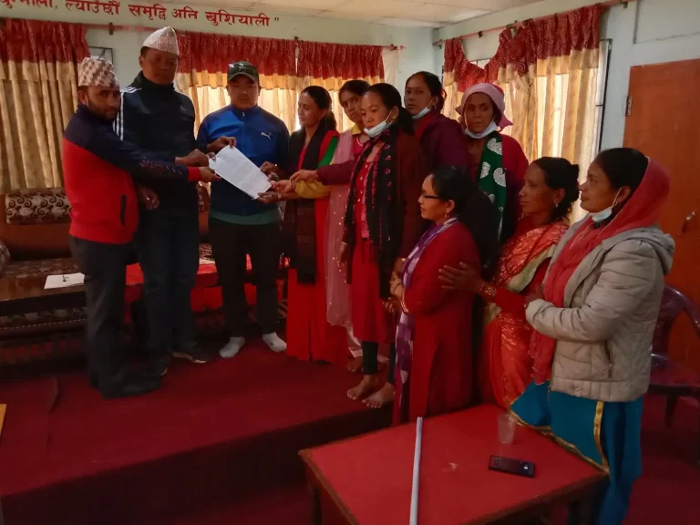शी–लीड्स–मध्यवर्ती प्रशिक्षण समापन कार्यक्रमको अवसरमा जिल्ला समन्वय समिति खोटाङका सदस्य भगवती प्रधान, दिप्रुङ चुईचुम्मा गाउँपालिका कार्यपालिका सदस्य सिता राई लगायतले कांग्रेसका पालिका सभापति अमृत गिरी, एमालेका पालिका कमिटी इन्चार्ज लोकेन्द्र राई र नेकपा माओवादी केन्द्रका पालिका कमिटी उपाध्यक्ष किसन राईलाई ज्ञापन-पत्र बुझाउँदै प्रतिनिधित्वमा दाबी गरेका हुन् ।