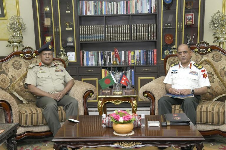 काठमाडौं – नेपालका लागि बंगलादेशका गैर-आवसीय सैनिक सहचारी अबुल कलाम आजादले प्रधानसेनापति प्रभुराम शर्मासँग शिष्टाचार भेट गरेका छन् ।