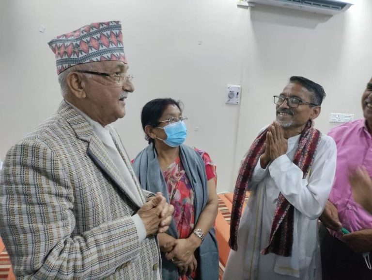 नेपालगञ्ज -काठमाडौका दुईवटा कार्यक्रम भ्याएर नेकपा एमालेका अध्यक्ष केपी शर्मा ओली अहिले साँझ नेपालगञ्ज आइपुग्नु भएको छ । साँझ ८.१५ बजे नेपालगञ्ज विमानस्थलमा अवतरण गरेका ओली होटल स्नेहामा बस्नु भएको छ ।