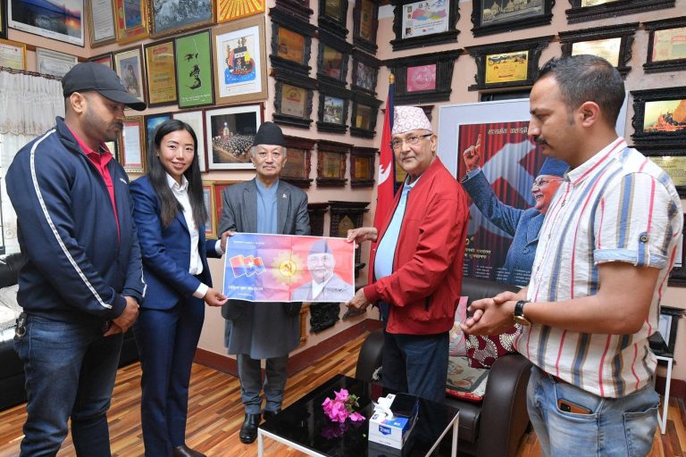 विश्वको सर्वोच्च शिखर सगरमाथामा नेकपा एमालेका अध्यक्ष तथा पूर्वप्रधानमन्त्री केपी शर्मा ओलीको तस्विर फहराउने हुनुभएको छ ।