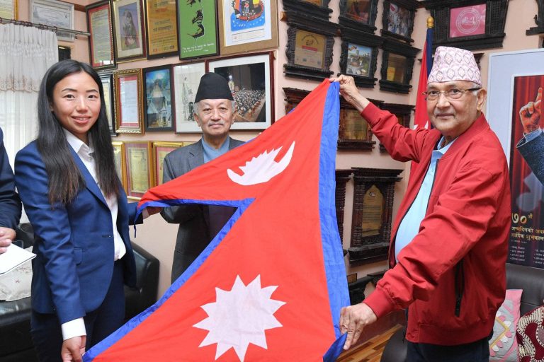 विश्वको सर्वोच्च शिखर सगरमाथामा नेकपा एमालेका अध्यक्ष तथा पूर्वप्रधानमन्त्री केपी शर्मा ओलीको तस्विर फहराउने हुनुभएको छ ।