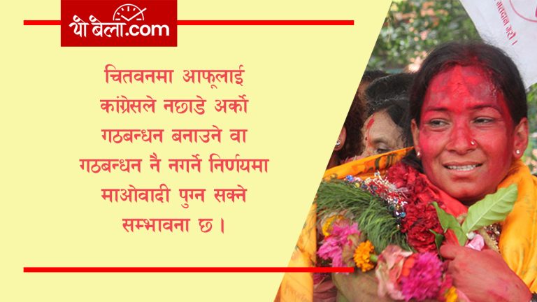 चितवनमा आफूलाई कांग्रेसले नछाडे अर्को गठबन्धन बनाउने वा गठबन्धन नै नगर्ने निर्णयमा माओवादी पुग्न सक्ने सम्भावना छ ।