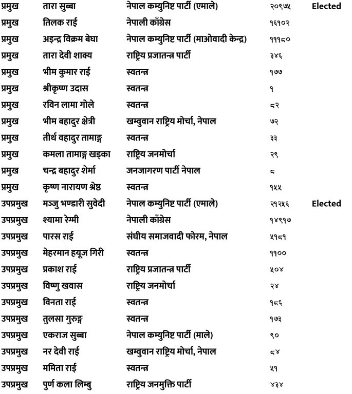 यस्तै उपमेयरका लागि एक पुरुष सहित छ जनाको नाम सिफारिस गरिएको छ । जसमा इन्द्रकला राई, सविता चाम्लिङ, लहरुमाया जिमी, पदमप्रसाद लिम्बु, लीला राई, सुशीला पहाडी रहेका छन् ।