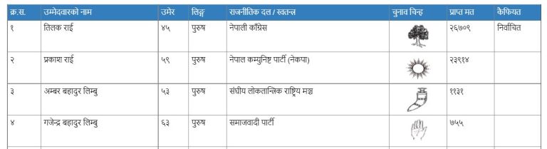प्रमुख तारा सुब्बाको निधन भएपछि भएको उपचुनावको नतिजा