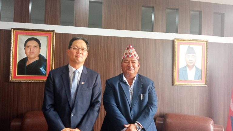 काठमाडौं- श्रम, रोजगार तथा सामाजिक सुरक्षामन्त्री कृष्णकुमार श्रेष्ठसँग नेपालका लागि दक्षिण कोरियाका राजदूत पार्क चोङ-सुकले शिष्टाचार गर्नुभएको छ ।