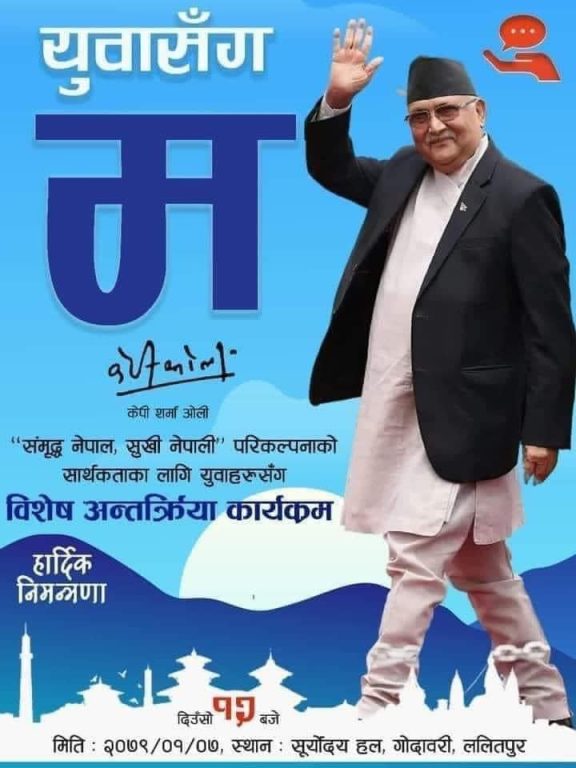 कार्यक्रमको आयोजक ओली आफैं हुनुहुन्छ । कार्यक्रममा चिकित्सा,इन्जिनियरिङ,अर्थ,कृषि,उद्योग लगायतका क्षेत्रमा संलग्न करिब १२ जना युवाहरुले आफ्नो धारणा राख्नेछन् । त्यसपछि अध्यक्ष ओलीले नेपालको विकास र समृद्धिको अहिलेको अवस्था,आफू सरकारमा छँदा गरेका प्रयासको चर्चा गर्नुहुनेछ । कार्यक्तममा सहभागी युवाहरुसँग केहीबेर प्रश्नोत्तर पनि राखिएको छ । कार्यक्रमम करिब तीन घण्टामास सकिने अध्यक्ष ओलीको सचिवालयले जनाएको छ ।