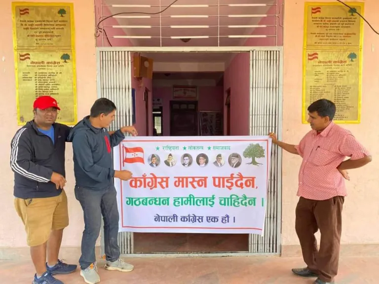 नुवाकोट – नुवाकोटमा नेपाली कांग्रेस मास्न पाइदैन भन्ने अभियान नै सुरू भएको छ । नेपाली कांग्रेसका कार्यकर्ताहरूले पार्टी कार्यालयमा व्यानर नै टाँगेर ‘कांग्रेस मास्न पाइदैन, गठबन्धन चाहिँदैन’ भन्ने अभियान सुरू भएको छ ।