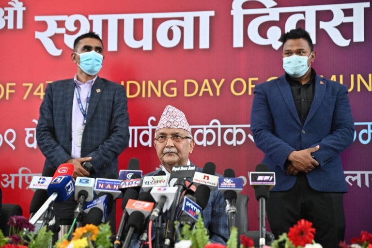 पार्टी कार्यालय, तुलसीलाल स्मृति भवनमा आयोजना गरिएको नेकपाको ७४औँ स्थापना दिवसको अवसरमा आयोजित कार्यक्रमलाई सम्बोधन गर्दै ओलीले गठबन्धनका नेताहरुलाई एमाले सम्झिएर राति ‘ऐँठन’ हुने टिप्पणी गर्नु भएको हो ।