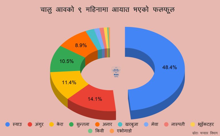 विभागका अनुसार नौ महिनाको अवधिमा प्रमुख फलफूल मात्रै रु.११ अर्ब ७० करोड ८९ लाख २६ हजार बराबरको आयात भएको देखिन्छ । मुलुकको आर्थिक क्षेत्रमा कृषिको योगदान उल्लेख्य रहे पनि अझै कूल कृषियोग्य जमिनमध्ये धेरै बाँझो छ । यस्ता कृषियोग्य भूभागको थोरै मात्रको सही र ब्यवस्थित उपयोग गर्नसके कृषिजन्य उपभोग्य वस्तुमा आत्मनिर्भर हुने अवस्था ल्याउन सकिन्छ । यस्ता उपभोग्य वस्तु आयात गरी अर्बौ रकम विदेशिनबाट जोगिन सक्ने देखिन्छ ।