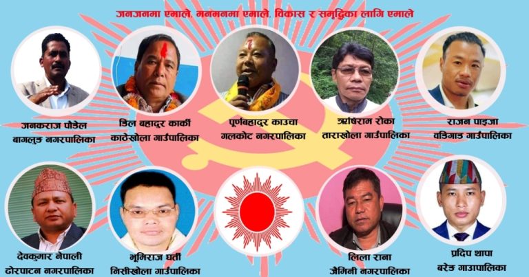 बाग्लुङ – अघिअघि पञ्चेबाजा पछिपछि उम्मेद्वार । काठेखोला गाउँपालिका ६, सुल्डाँडामा रहेको निर्वाचन अधिकृतको कार्यालय पुग्दा कोही नाचिरहेका थिए, कसैले गीत गाउँदै थिए, कसैले नारा लाउँदै थिए । नेकपा एमालेको तर्फबाट गाउँपालिकाको उमेद्वार बनेका डिलबहादुर कार्की नाचिरहेका थिए । उनका कार्यकर्ताले घरी गित गाउँथे त अघि पार्टीका नारा लगाउँथे ।
