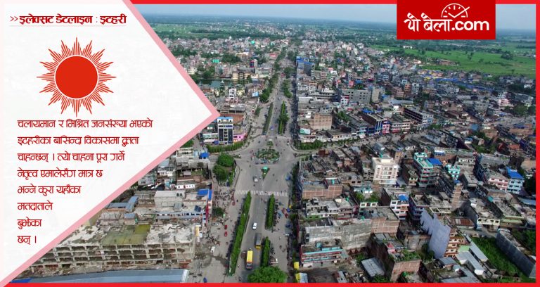 इटहरी– इटहरी पूर्वको सुन्दर सहर इटहरी । प्रदेश नं १ का दुईवटा उपमहानगर मध्ये एउटा उपमहानगर इटहरी । पूर्वपश्चिम राजमार्गको निर्माण भइसँगै बसेको यो सहर अहिले घनावस्तीको सहर बनेको छ । बहुदलीय व्यवस्थाको सुरुवात देखी नै एमालेतर्फको रुझान भएको इटहरी ‘एमालेको गढ’को रुपमा चिनिन्छ । यसवर्षको स्थानीय तहको निर्वाचनमा गठबन्धनलाई पराजित गरेर गढ थप बलियो. बनाउने ध्यान्नमा छन् यहाँका एमालेका नेता कार्यकर्ता ।