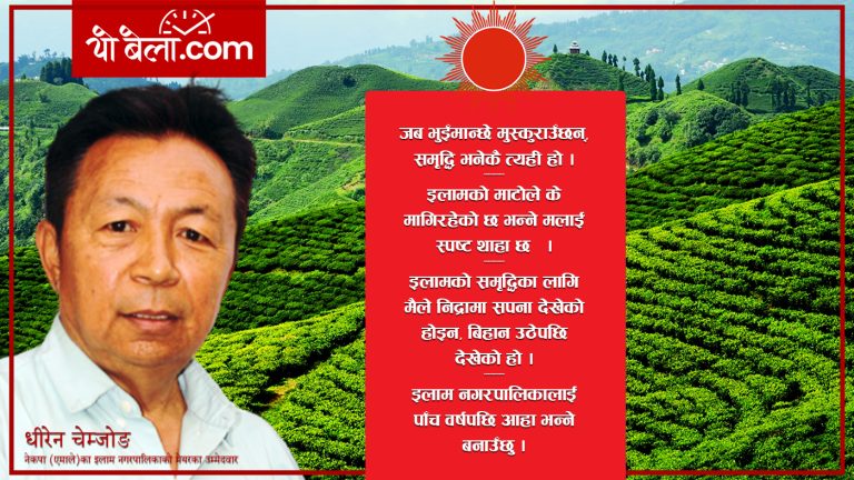 यही वैशाख ३० मा हुने स्थानीय तह निर्वाचनमा नेपाल कम्युनिस्ट पार्टी (एमाले)को तर्फबाट मेयरको उम्मेदवार बनेका धीरेन चेम्जोङ इलाम नगरपालिकाबासीका लागि परिचय गराइरहनुपर्ने नाम होइन । बाल्यकालदेखि कम्युनिस्ट राजनीतिमा सक्रिय भएरमात्र होइन, इलामको पत्रकारितालाई फलाउने, फूलाउनेदेखि यहाँको फुटबललाई हजारौं युवाको ढुकढुकी बनाउने अभियानको अग्र मोर्चामा सधैं धीरेन चेम्जोङकै नाम आउँछ । हक्की र आँटिलो स्वभाव, स्पष्ट बोली र विविध क्षेत्रको नेतृत्वदायी पात्रका रूपमा धीरेन चेम्जोङ प्रायः इलाम नगरबासीको आँखाअगाडि झुल्किरहेको हुन्छ र उनको आवाज इलामेका कानमा अक्सर गुुञ्जिरहेकै हुन्छ । विविध पृष्ठभूमिलाई आधार बनाएर उहाँ अहिले इलाम नगरको मेयरको प्रत्यासी छन् । प्रस्तुत छ, उनै चेम्जोङसँग आउँदो निर्वाचनमा केन्द्रित रहेर गरिएको कुराकानीको अंश :
