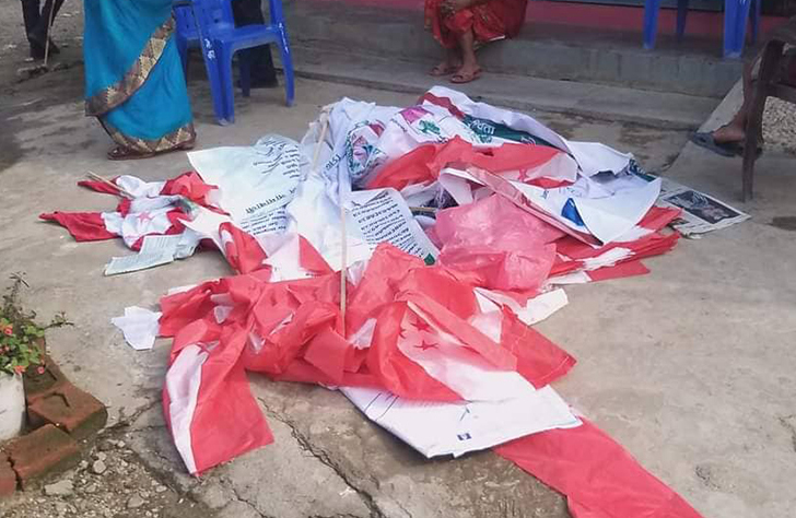 कांग्रेस कार्यकर्ताहरुले पार्टी कार्यालय तोडफोड गरी कार्यालयमा रहेका कुर्ची टेबल तथा पार्टीको झण्डा सडकमा फ्याँकेका छन्।