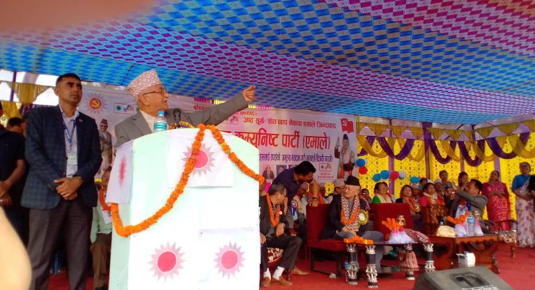 इलामको माई नगरपालिकास्थित दानाबारीमा आज (बुधबार) आयोजित चुनावी सभालाई सम्बोधन गर्दै ओलीले भूमिहीन सुकुमबासीलाई लालपूर्जा वितरण गर्ने बेला परमादेशबाट सरकार बनाउने एमाले हटाउने षड्यन्त्र गरिएको बताउनुभयो । ‘अबको आमनिर्वाचनपछि एमाले नेतृत्वको सरकार बन्छ, त्यो सरकारले मात्रै भूमिहीन सुकुमबासीको समस्या समाधान गर्न सक्छ,’ उहाँले भन्नुभयो, ‘जब एमालेले भूमिहीन सुकुमबासीका समस्या समाधान गर्ने प्रयास गर्छ, विपक्षीले त्यसलाई नपचाएर सरकार ढालिहाल्छन् ।’