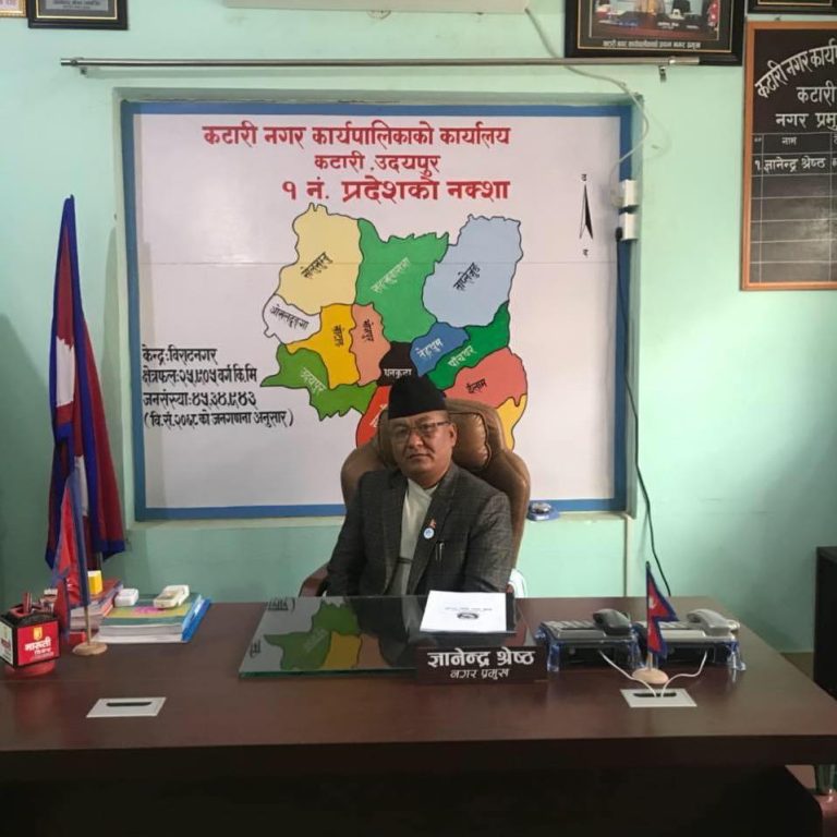 साविकका रिस्कु, लेखानी, मयंखु, हर्देनी, लिम्पाटार, सोरुङ्ग छविसे, सिरिसे गाविस र कटारी नगरपालिका मिलेर २०७१ सालमा स्थापना भएको कटारी नगरपालिकाको पहिलो नगर प्रमुखको रुपमा निर्वाचित ज्ञानेन्द्र श्रेष्ठको जन्म २०२४ सालमा भएको हो ।