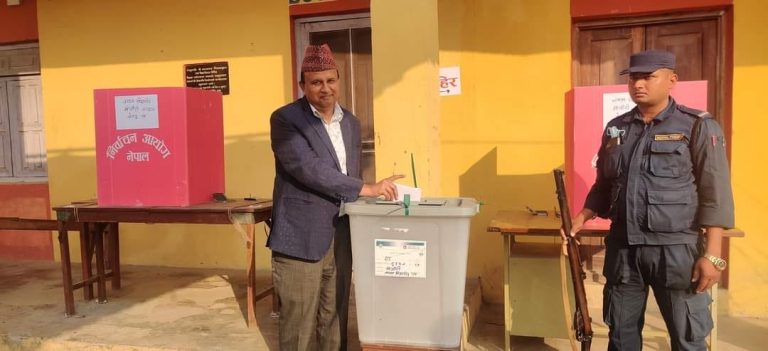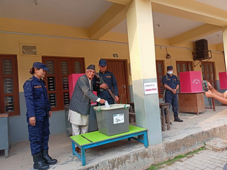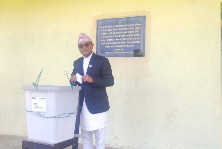 काठमाडौं, स्थानीय तहको निर्वाचन अन्तर्गत आज बिहानदेखि सुरु भएको मतदानमा विशिष्ट व्यक्तित्वहरु र दलका शीर्ष नेताहरुले मतदान गरिसक्नुभएको छ । प्रधानमन्त्री, सभामुख, प्रमुख निर्वाचन आयुक्त तथा दलका शीर्ष नेताहरुले मतदान गर्नुभएको छ । हेरौं तस्बिरहरु