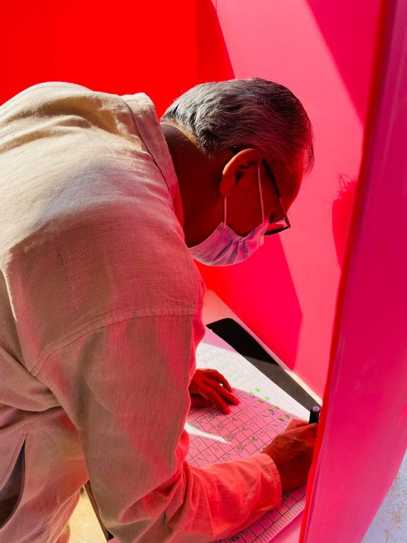 डा भट्टराईले आज बिहान मतदान गर्ने क्रममा गोप्य मतदान गर्ने ठाउँबाट निर्वाचन चिह्नमा छाप लगाएको फोटो खिचेर सामाजिक सञ्जालबाट सार्वजनिक गर्नुभएको थियो ।