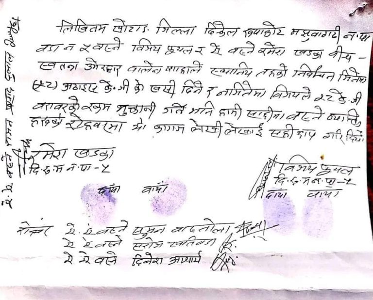 सहीछाप, दायाँबायाँ औंठा छाप गरेका उनीहरुसँग सुमन बास्तोला, सरोज खतिवडा र दिनेश आचार्य साक्षी छन् ।