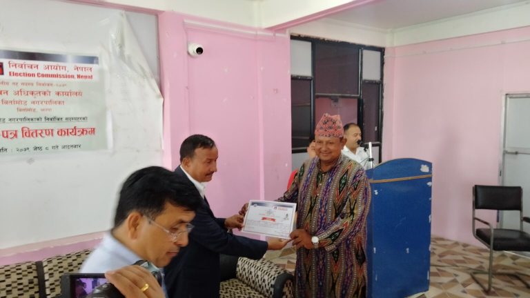 बिर्तामोड – निर्वाचन अधिकृतको कार्यालय बिर्तामोडले निर्वाचित जनप्रतिनिधिलाई प्रमाणपत्र वितरण गरेको छ ।