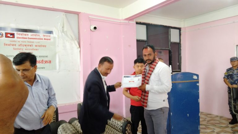 एक कार्यक्रमको आयोजना गरी आज प्रमाणपत्र वितरण गरिएको हो । स्थानीय तह निर्वाचन २०७९ मा उम्मेदवारी दिएका उहाँहरु बिर्तामोडबासीबाट अनुमोदित भएपछि निर्वाचन अधिकृतको कार्यलयले प्रमाणपत्र हस्तान्तरण गरेको हो ।