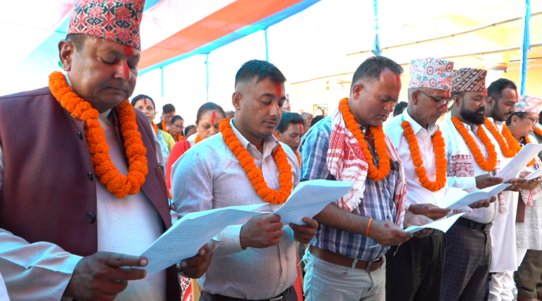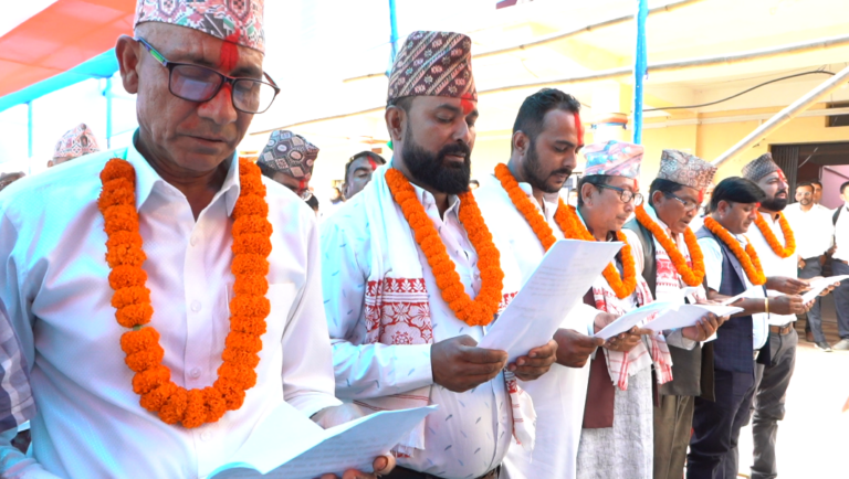 नगरपालिकाको कार्यालयमा आयोजना गरिएको शपथग्रहण तथा पदबहाली कार्यक्रममा नगर प्रमुख पवित्रा महतारा प्रसाईले उपप्रमुख नगेन्द्रप्रसाद संग्रौलासहित नवनिर्वाचित ५१ जना जनप्रतिनिधिहरुलाई पद तथा गोपनीयताको सपथ गराउनु भएको भएको हो ।