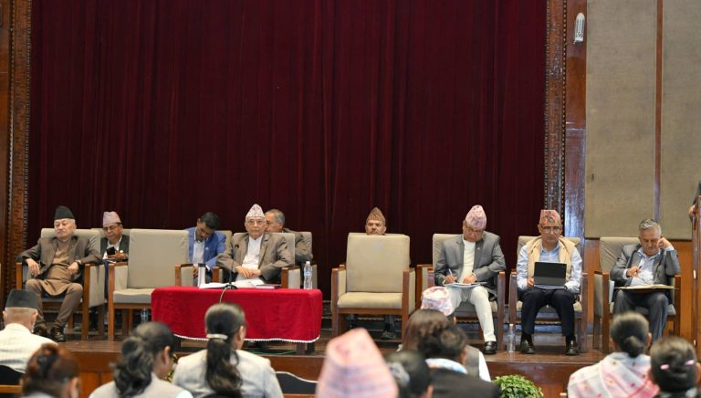 काठमाडौं – आर्थिक वर्ष २०७९/८० का लागि गठबन्धन सरकारले ल्याएको बजेटबारे छलफल गर्न प्रमुख प्रतिपक्षी नेकपा एमाले संसदीय दलको बैठक बसिरहेको छ।