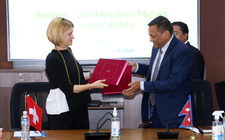 काठमाडौं – वैदेशिक रोजगारबाट स्वदेश फर्केका श्रमिकलाई पुनः एकीककरण गर्ने कार्यक्रम सञ्चालन गर्न स्विट्जरल्यान्ड सरकारले आर्थिक सहायता उपलब्ध गराउने भएको छ ।