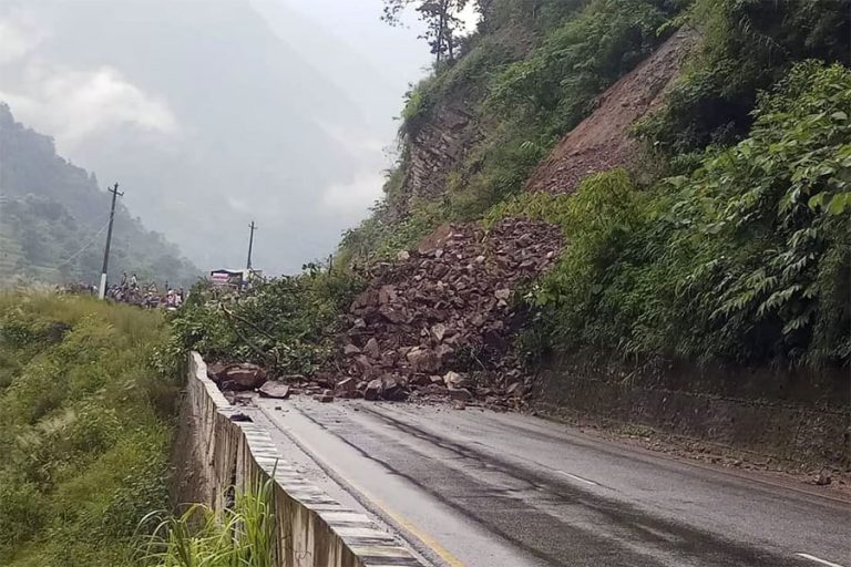 काठमाडौं -वर्षासँगै खसेको पहिरोका कारण नारायणगढ– मुग्लिन सडक अवरुद्ध भएको छ । इच्छाकामना ६ तोपेखोलास्थित नाम्सी पुलमा बिहान ४ बजे पहिरो झरेका कारण रातिदेखि सडक अवरुद्ध भएको जिल्ला प्रहरी कार्यालय चितवनले जनएको छ ।