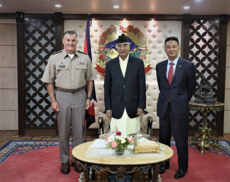 काठमाडौं – प्रधानमन्त्री शेरबहादुर देउवासँग संयुक्तराज्य अमेरिकी सेनाका एशिया–प्रशान्त क्षेत्र प्रमुख चाल्र्स ए फ्लिनले शिष्टाचार भेटवार्ता गर्नुभएको छ ।
