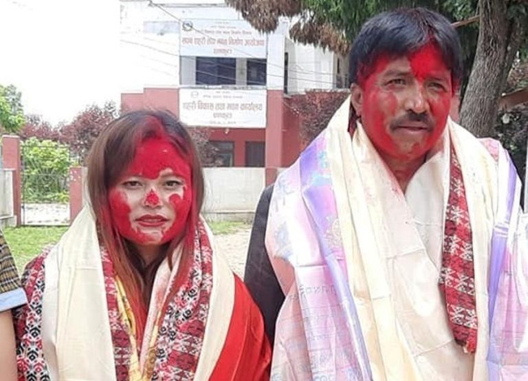 निर्वाचनमा गठबन्धनका तर्फबाट उमेद्वार हर्क चेम्जोङ्गले ५, उप–प्रमुख मन्जु कार्कीले ४ मत महिला सदस्यहरु, डम्बरकुमारी अधिकारी (धमला) र बिमला राई (माबुहाङ्ग) ले ५/५ मत तथा सरिता खत्री (भण्डारी) ले ४ मत पाउनु भयो ।