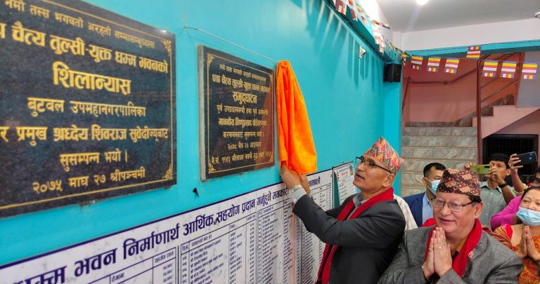 बिहार निर्माणका लागि नेपाल सरकार, तराइ मधेस समृद्ध कोषबाट ५० लाख रुपैया, बुटवल उपमहानगरपालिकाबाट १४ लाख ४३ हजार ३ सय ९९ रुपैयाका साथै धेरै दाताहरुको सहयोगमा करीब १ करोड २४ लाख ७४ हजार २ सय ७९ रुपैया लागतमा पुर्वाधार तयार भएको महासचिव दिपक बहादुर बज्राचार्यले बताउनु भयो ।