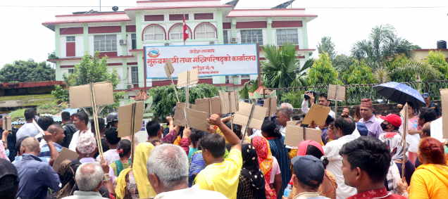 विमानस्थलको स्तरोन्नती गर्ने भन्दै सरकारले आसपासका साढे तीनसय परिवारको १२६ विघा जमिन र घर दुई वर्षदेखि रोक्का गरेर मुआब्जा दाबी गर्न बोलाएको थियो । तर सरकारले मुआब्जाका लागि दुईवर्ष सम्म बजेटको व्यवस्था नगरेपछि उनीहरु सडकमा उत्रिएका हुन् ।