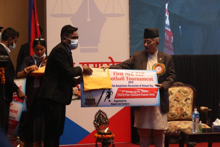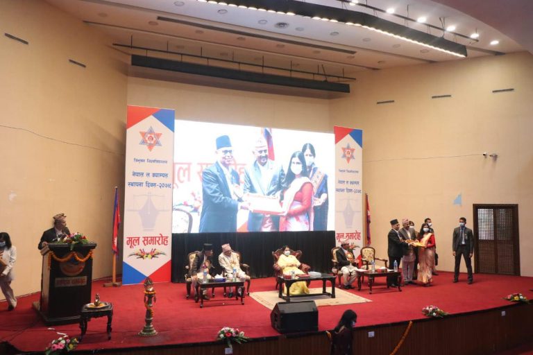 नेपाल ल क्याम्पको स्थापना दिवसको अवसरमा आज आयोजित कार्यक्रममा राष्ट्रपति विद्यादेवी भण्डारीले एमाले उपाध्यक्ष नेम्वाङ र प्राध्यापक सुवेदीलाई स्वर्ण सम्मानबाट सम्मानित गर्नुभएको हो ।