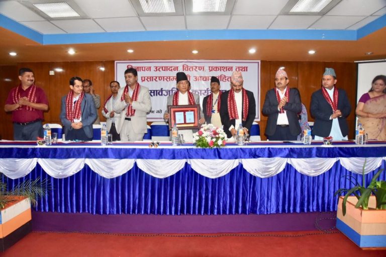 कार्यक्रममा बोर्डका कार्यकारी अध्यक्ष लक्ष्मण हुमागाईंले सरोकारवाला पक्षहरुसँगको लामो छलफलपछि आचारसंहिता जारी भएको जानकारी दिनुभयो । उहाँले आचारसंहिता अभावमा विज्ञापन क्षेत्रमा भएका विसंगति अन्त्य हुने विश्वाससमेत व्यक्त गर्नुभयो ।