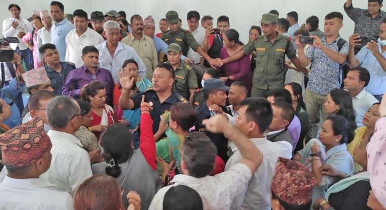 आज दिउँसो १ बजेका लागि बोलाइएको नगर सभा बैठक स्थगित भएको जानकारी गराएपछि एमालेबाट निर्वाचित जनप्रतिनिधिले विरोध जनाएका हुन् ।