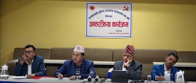 पार्टीको उपभोक्ता हित संरक्षण तथा सुशासन विभागद्वारा आज काठमाडौंमा आयोजित ‘उपभोक्ताको दृष्टिमा गठबन्धन सरकारको एक वर्ष’ विषयक अन्तरक्रियामा उपमहासचिव ज्ञवालीले भन्नुभयो–सरकार र सिङ्गो अर्थतन्त्र डरलाग्दो गरी विचौलियाको नियन्त्रणमा गएको छ ।