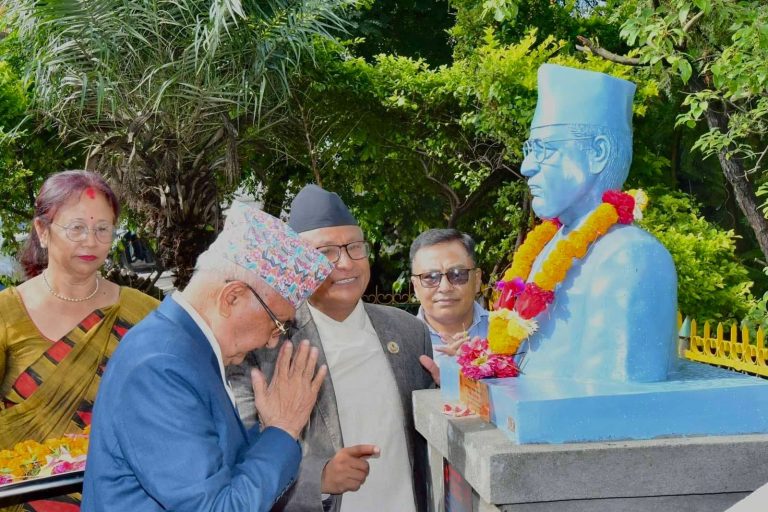 काठमाडौ -नेकपा एमालेका अध्यक्ष केपी शर्मा ओली नेकपाका संस्थाका महासचिव पुष्पलालको स्मृतिको दिवशमा भाग लिन काठमाडौं महानगर १८ स्थित ताम्सिपाखामा पुगेर पुष्पलालको शालिकमा माल्यापर्ण गर्नु भएको छ । कार्यक्रमका केही तस्विरहरु :