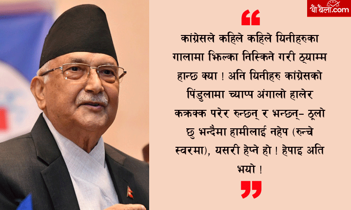 अस्तिको चुनाव राम्रो भएन । तर हाम्रा विरोधीहरुले भनेकोजस्तो लघुताभाषको शिकार हुनुपर्ने पनि केही छैन । १०-१५ वटा सिट ल्याएको छ, त्यो पनि अर्काको भरमा । अर्काका रुखबाट अलिअलि झरेका पात जम्मा गरेर डोकामा हालेको छ, अनि के भन्छ–एमालेको त वन नै सखाप भयो । न आफ्नो विरुवा छ, न केही छ विचरा, एमालेको वन नै समाप्त पार्दिएँ भन्छ । अहिले हा¥यो भन्दा पनि सिटको हिसाबले पनि त दोस्रो पार्टीएमाले नै भएको होला नि । सबैले मिलेर टोक्दा पनि २०६ त एमालेले एक्लै जितेको होला नि । कसैले हाततिर टोक्ने, कसैले खुट्टातिर टोक्ने, कसैले पिडौंला टोक्ने, कसैले तिघ्रातिर उफ्रिउफ्रि झम्टिने ।सबै गर्दा पनि त यत्रो सिट ल्याएको होला नि ।सबै भन्दा ठूलो पार्टी भनेको गठबन्धनको काँग्रेस होला, त्यो भन्दा १ लाख बढी भोटएमालेले ल्याएको होला । एक प्रतिशत बढी भोट त फेरि पनि एमालेले ल्याएको होला । विभिन्न खोजमेल, गोडमेल, अैंचोपैंचो, सापटी गर्दा ३ प्रतिशत पु¥याउनेले पनि एमालेले हा¥यो अरे ! सबै भन्दा बढी ३४ प्रतिशत एमालेले ल्याएको छ नि । अनि एमाले हा¥यो अरे ! हामी यो हल्लाका पछाडि लाग्नु पर्ने आवश्यकता छैन ।