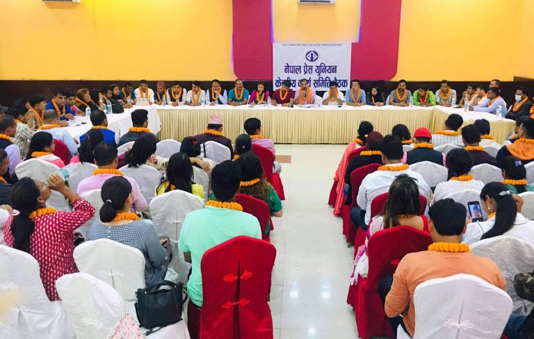 यही साउन ६ र ७ गते मकवानपुरको हेटौँडामा सम्पन्न युनियनको नवौँ महाधिवेशनबाट नवनिर्वाचित केन्द्रीय कार्यसमितिको पहिलो बैठकले प्रेस तथा अभिव्यक्ति स्वतन्त्रता सुनिश्चित गर्न र आम सञ्चार छाता ऐन निर्माण गर्नसमेत माग गरेको छ । काठमाडौँमा सम्पन्न केन्द्रीय समिति बैठकले श्रमजीवी ऐन पूर्णरुपमा कार्यान्वयन गर्न सरकार र सञ्चार प्रतिष्ठानको ध्यानाकर्षण गराउने निर्णय गरेको महासचिव दिलीप पौडेलले जानकारी दिनुभयो ।