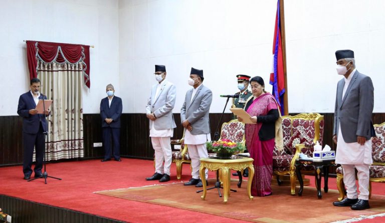 काठमाडौं – अर्थमन्त्री जनार्दन शर्माले पद तथा गोपनीयताको शपथ लिनु भएको छ ।