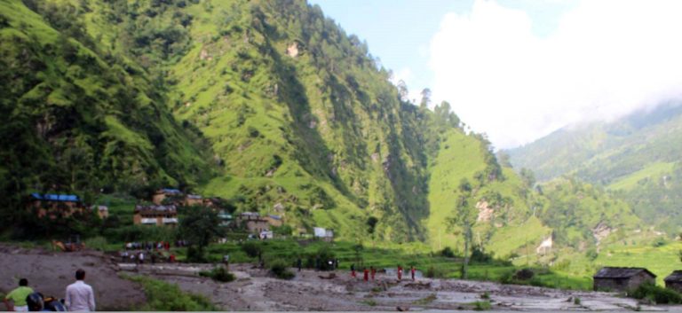बाजुरा – बाजुराको बडीमालिका नगरपालिका-९ सेलाघाटमा शुक्रबार राती आएको बाढीले बगाएको खेतीयोग्य जमिन । बाढीले २८ परिवारको २० रोपनी जग्गा बगाएको छ ।