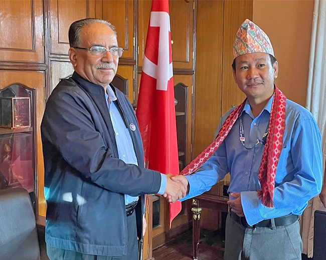 काठमाडौं – धरान उपमहानगरपालिकाका मेयर हर्क साम्पाङले नेकपा माओवादी केन्द्रका अध्यक्ष पुष्पकमल दाहाल ‘प्रचण्ड’सँग भेटवार्ता गरेका छन् ।