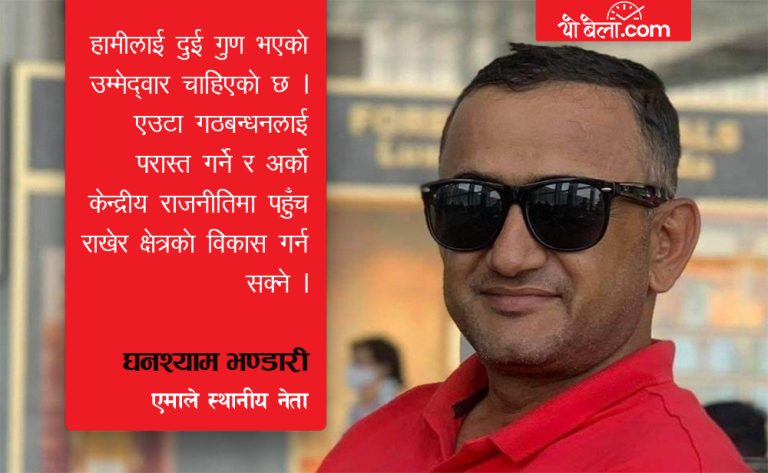 २०७४ सालको निर्वाचनमा तत्कालिन वाम गठबन्धनबाट एमालेका पुराना नेता घनश्याम खतिवडा विजयी हुनुभयो । तत्कालिन लेटाङ गाविसका अध्यक्ष खतिवडालाई यहाँका मैदान र भीरपाखा सबैले चिन्छन् भन्ने यहाँका जनता । केन्द्रीय राजनीतिमा खासै नदेखिने खतिवडा जनताका घरआँगनमा भने बारम्बार देखिएपछि उहाँप्रतिको मोह जनताको छ नै । ‘स्थानीय क्षेत्रमा प्रभाव घनश्याम खतिवडाको बलियो छ,’ उर्लाबारीका एक एमाले कार्यकर्ता भन्छन्, ‘तर उहाँले आफू उम्मेद्वार हुने नहुने अहिलेसम्म केही बताउनुभएको छैन ।’
