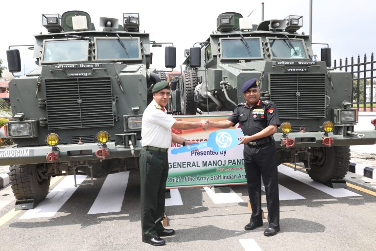 काठमाडौँ – प्रधानसेनापति प्रभुराम शर्माको औपचारिक निमन्त्रणामा नेपालको पाँच दिवसीय भ्रमणमा रहनुभएका भारतीय स्थल सेनाध्यक्ष मनोज पाण्डेले नेपाली सेनालाई सहुलियतपूर्ण रुपमा चार घोडासहित रु २२ करोड ३८ लाखको सैनिक तथा मेडिकल सामग्री हस्तान्तरण गर्नुभएको छ । विगतमा भएको नेपाल भारत द्विपक्षीय परामर्श समूहको निर्णयानुसार नेपाली सेनाको मुख्यालय जङ्गी अड्डामा आज आयोजित विशेष समारोहबीच उहाँले उक्त सामग्री हस्तान्तरण गर्नुभएको हो ।