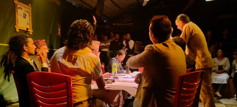 दमकको वडा-९ स्थित थिएटरको नाटक घर निर्मार्णाधिन स्थलमा बनाइएको अस्थायी टहरालाई नाटक घरको स्वरुप दिएर यो नाटक देखाउन थालिएको हो । यसअघि समेत थिएटरले देखाएका नाटकहरूले दमकमा क्रमिक रूपमा नाटकसँगै श्रीजनशिलताको विकास गर्दै आएको वडा–९ वडाअध्यक्ष कुवेर भट्टराईले जानकारी दिनुभयो ।