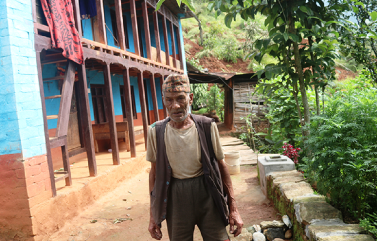 बागलुङ नगरपालिका-११ को तल्लो रामतोला बस्तीको सबैभन्दा माथि ढालानाथ पौडेलको घर छ । उहाँलाई यो घर छोड्न पटक्कै मन छैन । तर ज्यान नै जोखिममा राखेर घर कुर्न उहाँले सक्नुभएन । सात सन्तानका पिता ढालानाथलाई जीवनको आधा समय तीनै छोराछोरी हुर्काउन लाग्यो । बुढ्यौलीमै भए पनि दुःख–सुख गरेर बनाएको दुईतले घरमा दैवको आँखा लाग्यो । “बैँशमा बा–आमा कुरेर बसेँ, छोराछोरी हुर्काएँ, अहिले बा–आमाले छाडेर गए, छोराछोरी आफ्नै बाटो लागे, बूढाबूढीका लागि घामपानी ओत्न बनाएको बासमा दैव लाग्यो बाबु”, पर्खालको छेउमा बसेर पहिराले अँठ्याउनै लागेको घर देखाउँदै पौडेलले भन्नुभयो, “मेरो पसिना यहीँ थियो बाबु, कान्छा छोराले सहयोग गरेर बनाएको बास हो, पहिरोले नासियो ।”